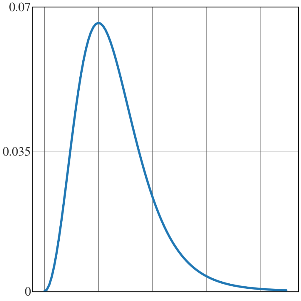 alpha = np.linspace(0,2,100) func = alpha**2 / (1 + alpha**2)**6 with plt.style.context(('seaborn-v0_8-whitegrid')): plt.rcParams.update(synchrotron_style) fig = plt.figure(figsize=(12,12)) plt.plot(alpha, func, lw = 6) plt.xticks([0, 1/np.sqrt(5), 2/np.sqrt(5), 3/np.sqrt(5), 4/np.sqrt(5)], ["", "", "", "", ""], fontsize = 26) plt.yticks([0, 0.035, 0.071], ["0", "0.035", "0.07"], fontsize = 34) plt.ylim(-0.0001,0.071) plt.tight_layout() |
