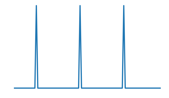 N, n = 101, 30 def f(i): return ((i-15) % n == 0) * 1 comb = np.fromfunction(f, (N,), dtype=int) plt.figure(figsize = (12,7)) plt.plot(comb, lw=5) plt.axis('off') plt.show() |
